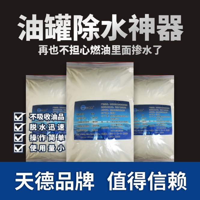 油罐除水劑可徹底去除油品中混入的水分,本品使用量小,脫水迅速、高效,不吸收油品,是解決油水分層的理想產(chǎn)品,是推廣甲醇汽油中必備的產(chǎn)品。天德牌油罐除水劑也可以應用于工業(yè)生產(chǎn)廢水處理、養(yǎng)殖業(yè)污水清理、油脂精煉脫水等方面。